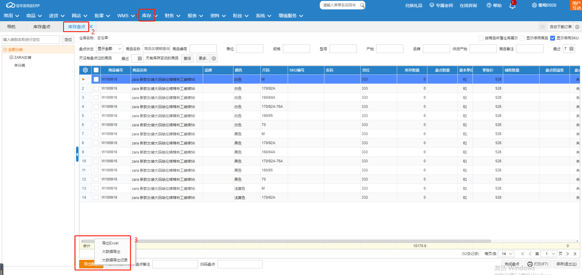 您好,操作路径【库存】-【库存盘点】,选择需要盘点的仓库,左下角点导出数据,按报表填好盘点数据保存后,在盘点记录中导入报表,点完成盘点,如下图所示: