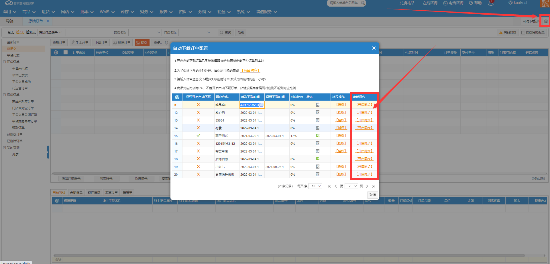 开启后,系统默认每隔十分钟左右自动下载网店后台新拍下的订单(不支持自定义更改下载间隔时间)。